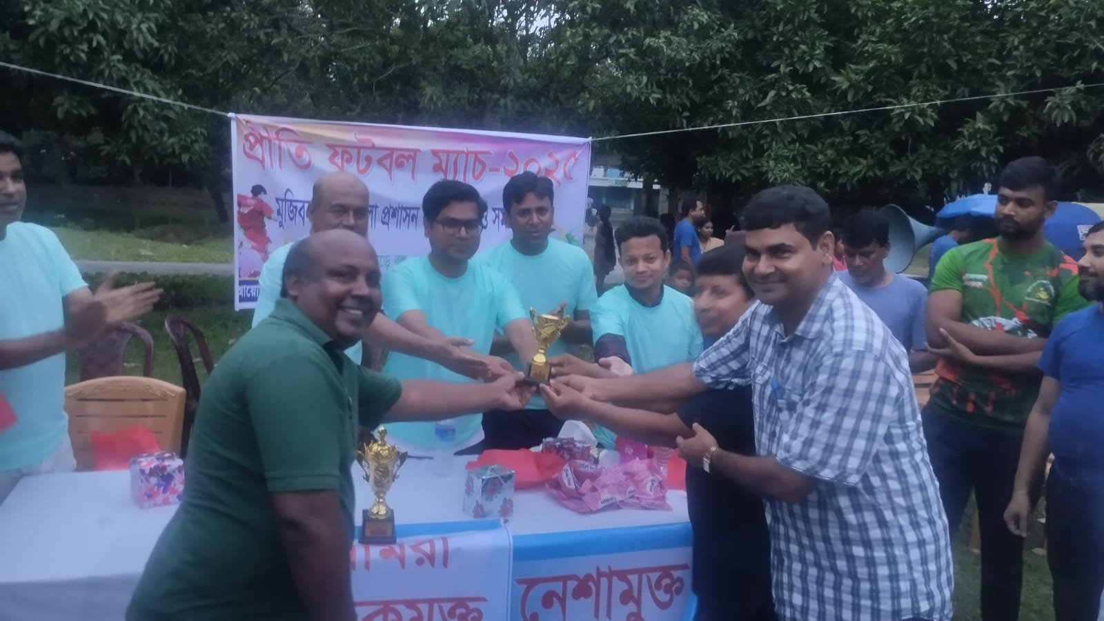 মুজিবনগর উপজেলা প্রশাসন ও এনজিও সমন্বয় কমিটির উদ্যোগে মাদকবিরোধী প্রীতি ফুটবল ম্যাচ