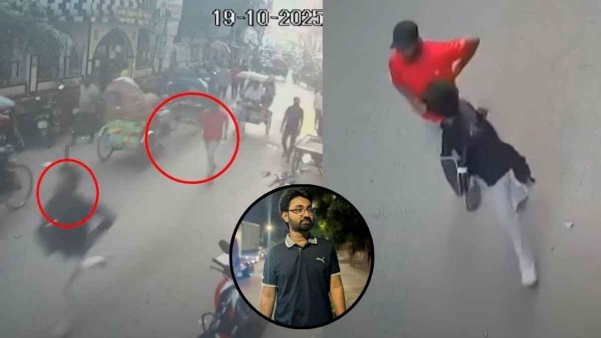 সিসি ক্যামেরার ফুটেজে দেখা যায়, ঘটনার ঠিক পরপরই ভবনটির পাশের একটি গলিতে দুই তরুণ দৌড়ে বেরিয়ে যাচ্ছে। একজনের পরনে ছিল কালো টি-শার্ট, অন্যজনের গায়ে গোলাপি টি-শার্ট। তবে ফুটেজটি কিছুটা অস্পষ্ট হওয়ায় তাদের মুখ পরিষ্কারভাবে দেখা যায়নি।