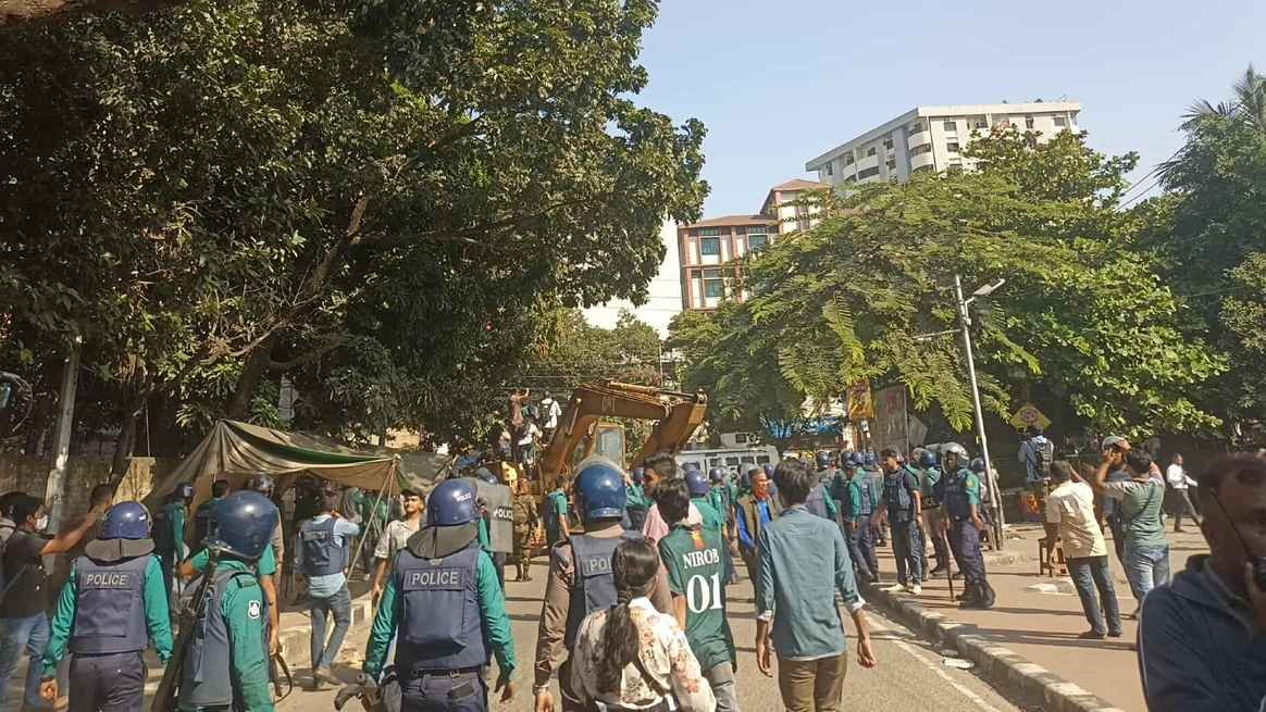 এরপর তারা ১ টা ০৭ মিনিটের দিকে পুলিশের ব্যারিকেড ভাঙার চেষ্টা করলে পুলিশ ও সেনাবাহিনীর সদস্যরা একযোগে তাদের ধাওয়া দিলে সবাই ছত্রভঙ্গ হয়ে যায়।