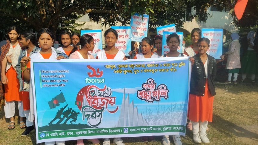 পরেু মুজিবনগর উপজেলা বিএনপি‘র সভাপতি আমিরুল ইসলাম ও সাধারন সম্পাদক আলহাজ মশিউর রহমানের নেতৃত্বিতে বিজয় র্যালী শেষে মুজিবনগর স্মৃতিসৌধে পূষ্পমাল্য অর্পণ করা হয়।