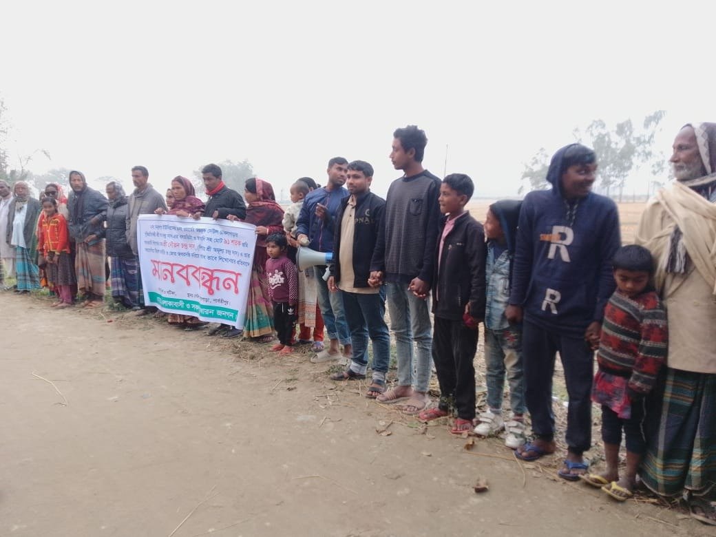 এই ন্যাক্কারজনক ঘটনার প্রতিবাদে বৃহস্পতিবার (২৫ ডিসেম্বর) বিকাল ৩ ঘটিকায় দেউল চাকলাপাড়া এলাকায় এক বিশাল মানববন্ধন অনুষ্ঠিত হয়। এলাকাবাসীর ব্যানারে আয়োজিত এই মানববন্ধনে শ্রী কালিয়াচন্দ্র রায়ের সভাপতিত্বে প্রায় দুই শতাধিক স্থানীয় মানুষ অংশ নেন।