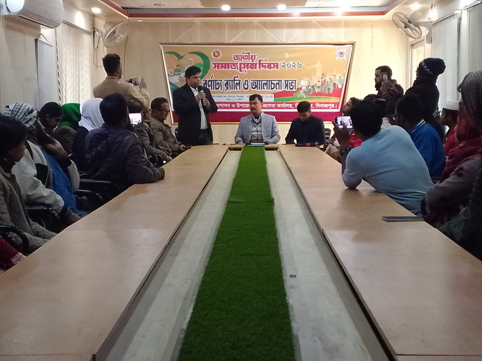 ্উপজেলা কন্ফারেন্স রুমে ইউএনওর পক্ষে উপজেলা কৃষি কর্মকর্তা কমল কৃষ্ণ রায়ের সভাপতিত্বে আলোচনা সভায় বক্তব্য রাখেন, উপজেলা সমাজ সেবা কর্মকর্তা আব্দুল আউয়াল, আবাসিক মেডিকেল অফিসার ডাঃ শাহরিয়ার পারভেজ, নির্বাচন কর্মকর্তা জোবায়ের হোসেন, কলেজ বাজার প্রেসক্লাবের সভাপতি মোরশেদ মানিক, বিরামপুর অটিষ্টিক ও প্রতিবন্ধী বিদ্যালয়ের প্রতিষ্ঠাতা গোলাম মোস্তফা, ল্যাম্ব বিরামপুরের টেকনিক্যাল কর্মকর্তা রতন দাস প্রমূখ। উপজেলা সমাজ সেবা কর্মকর্তা আব্দুল আউয়াল সমাজ সেবা বিভাগের পক্ষ থেকে মানুষের জন্য বিভিন্ন ক্ষেত্রে সেবা প্রদানের কর্মপরিধি তুলে ধরেন।