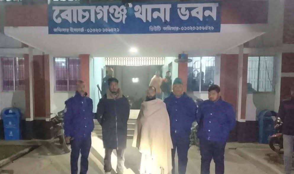 রোববার কোর্টের মাধ্যমে তাদের জেল কারাগারে পাঠানো হয়। এনসিপির বোচাগঞ্জ উপজেলা প্রধান সমন্বয়কারী এম এ তাফসীর হাসান ও মঞ্জুর আলম নামে দুইজনকে আটক করে বিক্ষুব্ধ জনতা এ সময় তাদের গণধোলাই দিয়ে পুলিশে দেয়া হয়। শনিবার (৩ জানুয়ারি) রাত সাড়ে ৯টায় দিনাজপুরের বোচাগঞ্জ উপজেলার বারেয়া গ্রামে এই ঘটনা ঘটেছে।এই ঘটনায় রবিবার (৪ জানুয়ারি) সকালে বারেয়া গ্রামের মৃত সাকুরা রাম রায়ের ছেলে সন্তোষ কুমার রায় (৪০) বাদী হয়ে বোচাগঞ্জ থানায় একটি চাঁদাবাজির অভিযোগ দায়ের করেছেন।এম এ তাফসীর হাসান ত্রয়োদশ জাতীয় সংসদ নির্বাচনে অংশগ্রহণের জন্য মনোনয়নপত্র সংগ্রহ করে ছিলেন। কিন্তু পরে আর তা জমা দেননি। আটক এম এ তাফসীর হাসান (৩৩) দিনাজপুরের বোচাগঞ্জ উপজেলার ধনতলা (কলেজ রোড) এলাকার মৃত শমসের আলীর ছেলে এবং মঞ্জুর আলম (৩৬) ভরড়া গ্রামের আব্দুল করিমের ছেলে। তাফসীর হাসান এনসিপির বোচাগঞ্জ উপজেলা প্রধান সমন্বয়কারীর দায়িত্ব পালন করছেন। তিনি ত্রয়োদশ জাতীয় সংসদ নির্বাচনে এনসিপির হয়ে মনোনয়নপত্র সংগ্রহ করেছিলেন। তবে তা দাখিল করেননি।