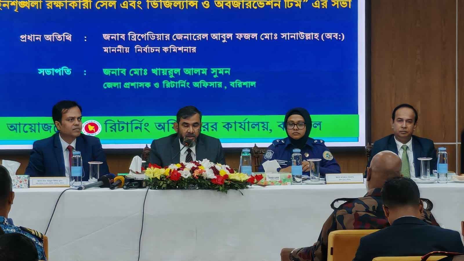 বরিশাল জেলা রিটার্নিং কর্মকর্তা খাইরুল আলম সুমনের সভাপতিত্বে আরও উপস্থিত ছিলেন জেলা পুলিশ সুপার ফারজানা ইসলাম প্রমুখ। -নিউজ ডেস্ক
